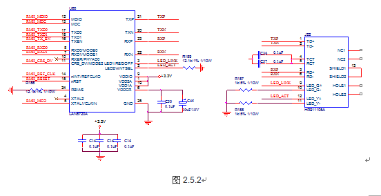 以太網(wǎng)通信接口采用片上以太網(wǎng)外設(shè)通過簡(jiǎn)化介質(zhì)獨(dú)立接口 (RMII)和外部快速物理層LAN8720A芯片實(shí)現(xiàn),RJ45接口內(nèi)部集成了1:1變比的信號(hào)變壓器,實(shí)現(xiàn)信號(hào)的隔離保護(hù),提高通訊的抗干擾性能,具體實(shí)現(xiàn)原理如圖2.5.2所示。